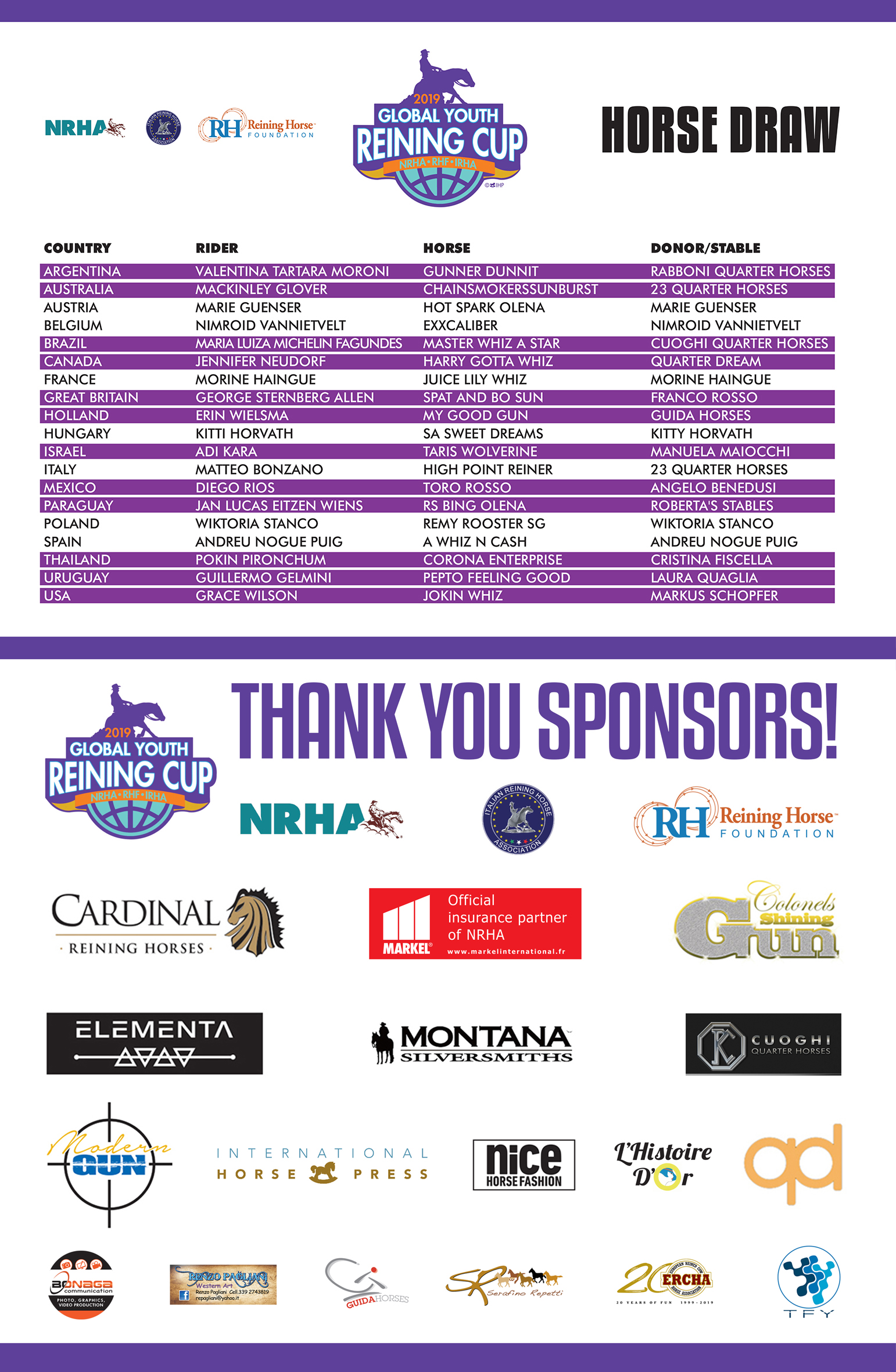 2019 NRHA/IRHA/RHF Global Youth Reining Cup Cremona, Italy, unites youth from around the world!