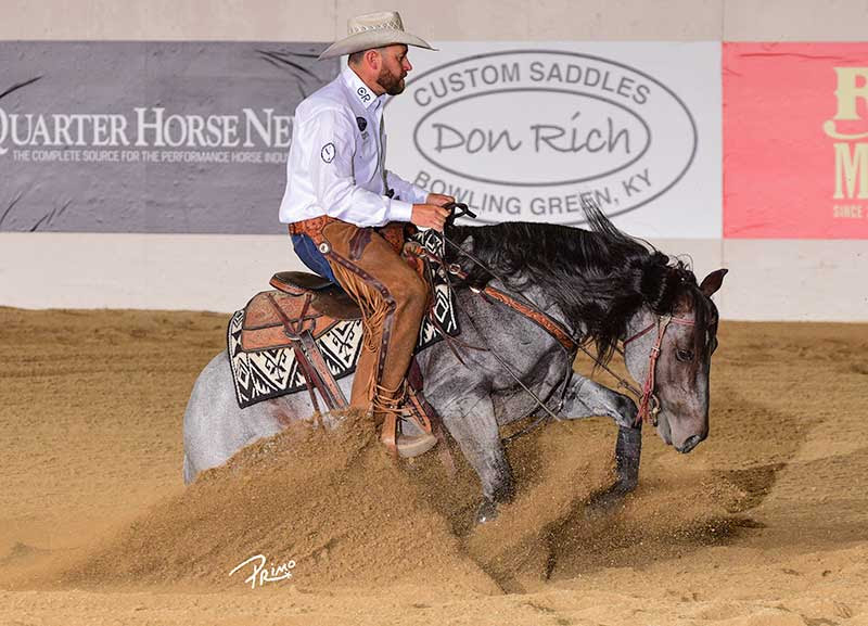 The temperature was not the only element of heat at the Paso Robles Event Center today. NRCHA Two Million Rider Corey Cushing piloted Hott Rod (Hottish x Sugars Smart Kitty x High Brow Cat) to a scorching 224.5 in the herd work preliminaries of the Open Derby. The 2015 stallion is owned by Lynne Wurzer, of Tucoma, Washington. The Scottsdale, Arizona professional and Hott Rod are no strangers to competition, the pair finished third at the 2018 NRCHA Snaffle Bit Futurity ®.
