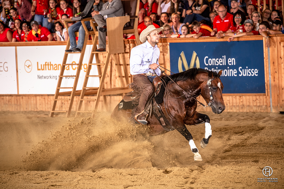 Keeping the public glued to their seats until the very end, Grischa Ludwig of Germany laid down an outstanding run riding Coeurs Little Tyke to a 225.5 which slid him straight to the highest step of the podium after Adrienne Speidel of Switzerland and her Arc Walla Smart had set the bar leaving the pen with a 221.5 to beat. Once the curtain fell on the CS Ranch arena, the lady reiner firmly clinched the Silver medal a half-point in front of Italy’s Lorenzo De Simone who settled for the Bronze atop The Cocked Gun.
