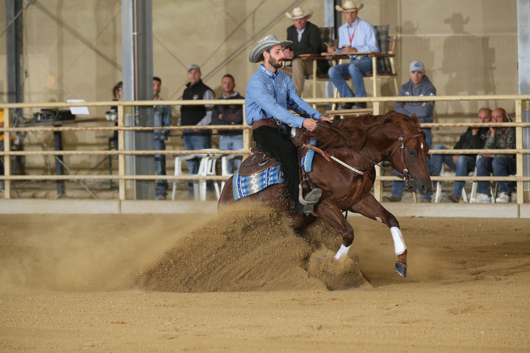 The 2019 edition of the Austrian Reining Horse Association 3-year-old Futurity counted 44 horses entered in the Open. Early in the qualifying go round, past IRHA Futurity Champion of Italy, Cristian Dalla Pozza, aboard Captains Doc Badger (AB Captain Badger x Kay Sarah) set the bar by posting a 219.5 score. The stallion, bred by Dario Carmignani and owned by Angelucci Quarter Horses, and his rider closed by taking the lead in Level (L)3 and L2 Open divisions.