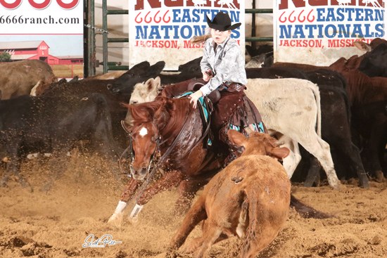 March 10, 2020 – Bama Jelly, by Bamacat, scored 228 points on Monday, March 9, in Jackson, Miss., to win the 2019 NCHA Eastern Nationals Open Championship under Austin Shepard. Ichi Sangria, by Cat Ichi, scored 225 with Guy Woods to claim the reserve championship, while Looks Halreycious, by Halreycious, scored 223 points with Bill Pierce for third place.