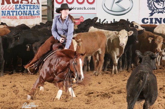 Riding Cowgirl Catsanova on Tuesday, March 10, Chase Lackey tied for third place in the NCHA Eastern Nationals $15,000 Amateur Finals. Lackey, the NCHA earner of $32,495, also placed in the Augusta Futurity 5/6 Classic Amateur Limited and Amateur Intermediate earlier this year, showing Streyght Drive LTE $9,047, by Hydrive Cat. Last year, Lackey was an NCHA Eastern Nationals $15,000 Amateur finalist riding Stellas Lil Scoot LTE $107,286, by Smart Lil Scoot. Cowgirl Catsanova LTE $32,495, Lackey’s 2019 Eastern Nationals entry, is a 10-year-old daughter of Cowboy Cattylac.
