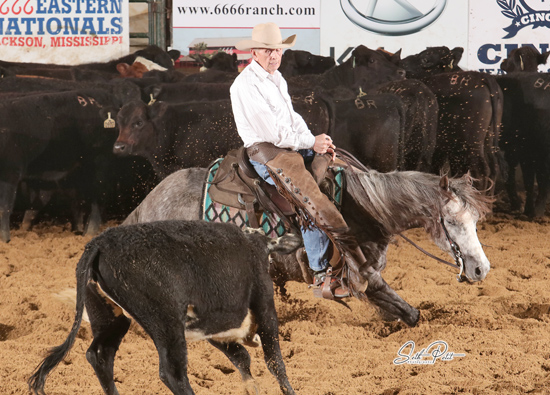 Larry Cooper, Orleans, Ind., overwhelmed the field with a 222-point win on LCS Silver Cat, by High Brow Cat, in the NCHA Eastern Nationals $35,000 Non-Pro Finals, on Wednesday, March 11. Carrie Watkins, West Mansfield, Ohio, claimed the reserve title with 216 points on Smart Mojo Cat, by Cats Moonshine, while Madeline Nix, Blackville, N.C., and Chase Lackey, Burlington, N.C., tied with 214.5 points to split third and fourth on Two Cat Shakur and Cowgirl Catsanova, respectively.