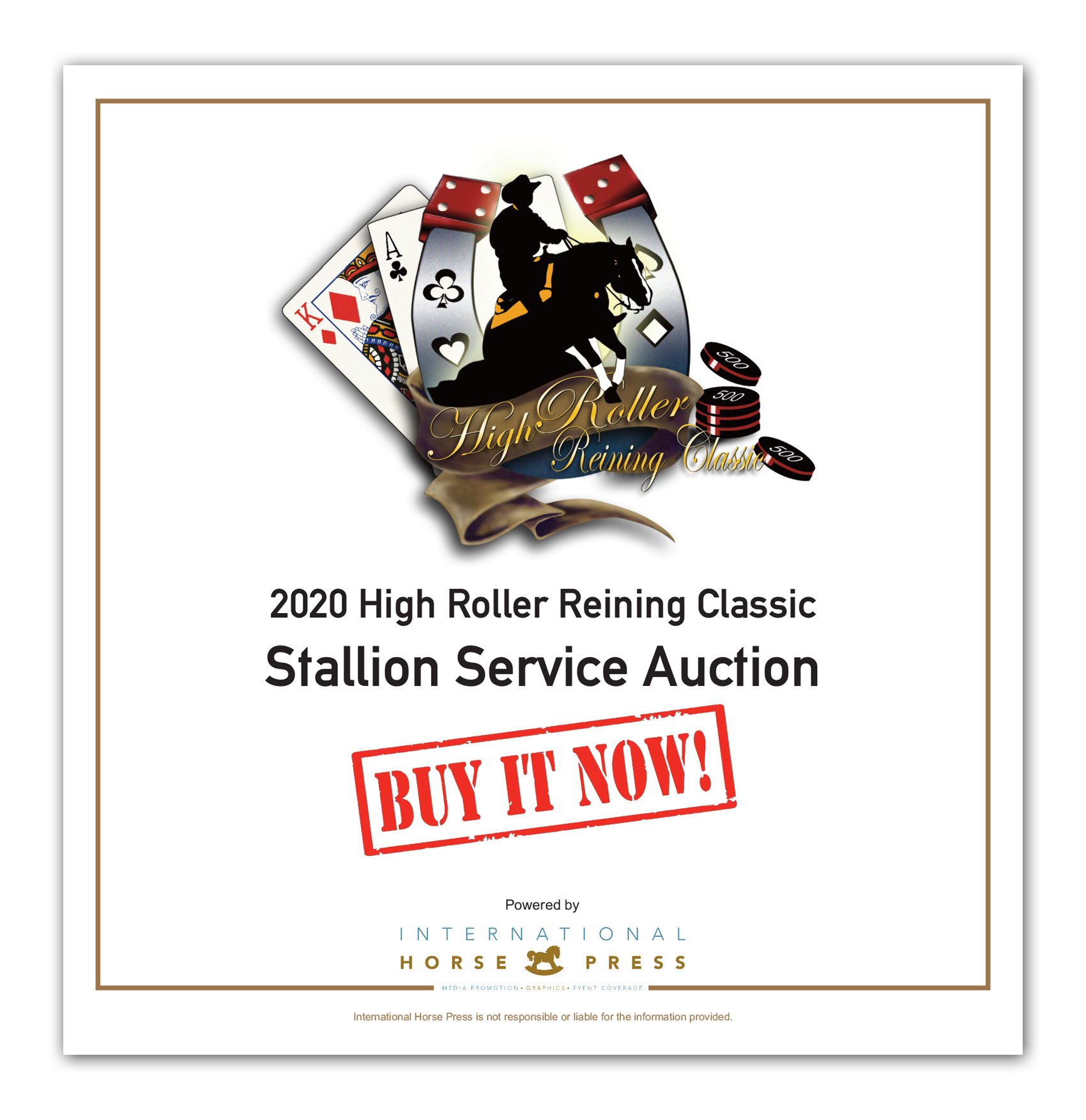 Click here, or on the cover, to view the current 2020 High Roller Reining Classic Stallion Service Auction – ‘Buy it Now’