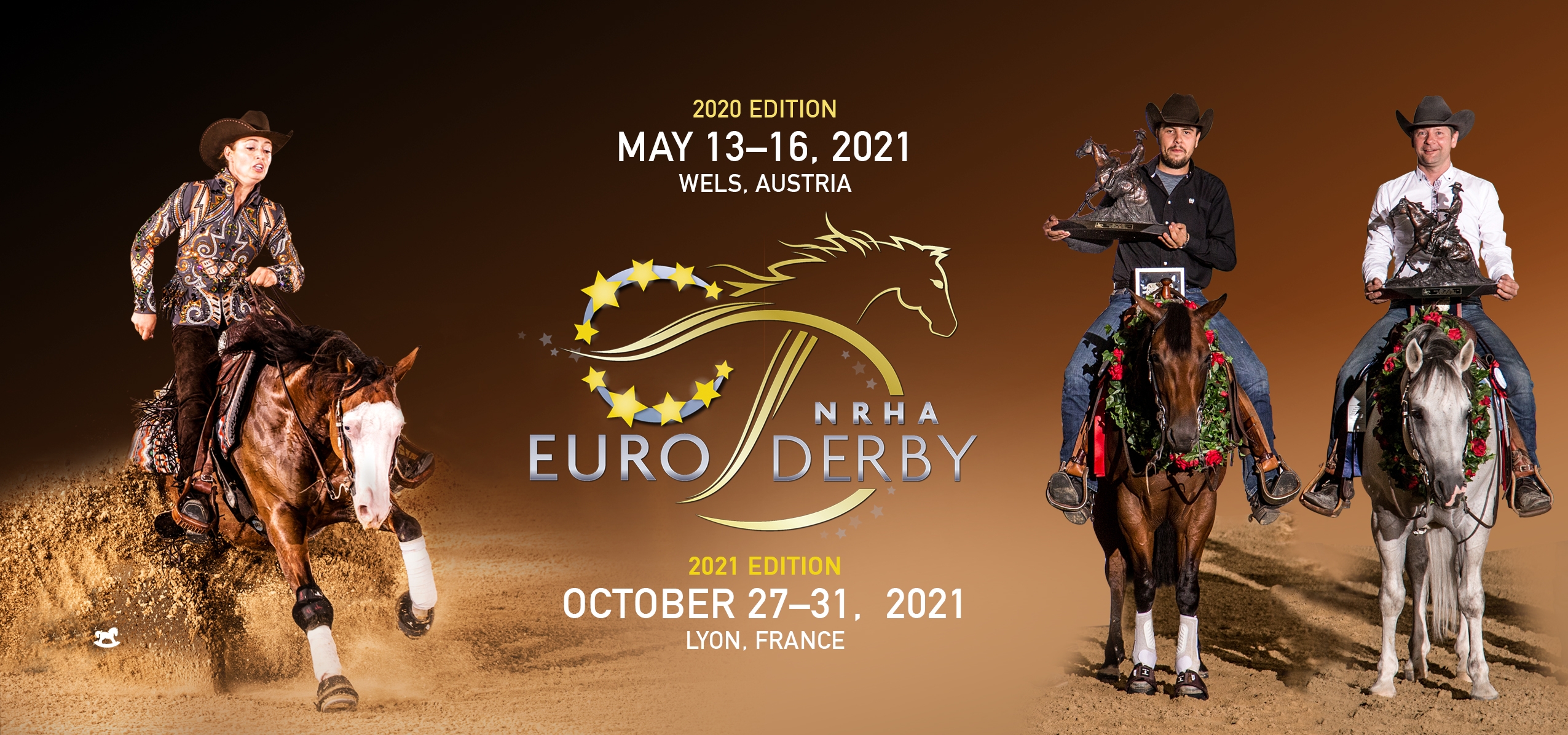 The 2021 NRHA European Derby will be held in Lyon, France in conjunction with Longines Equita Lyon October 27–31, 2021. This event will be open to NRHA nominated horses that are 5 to 8 years old in 2021.