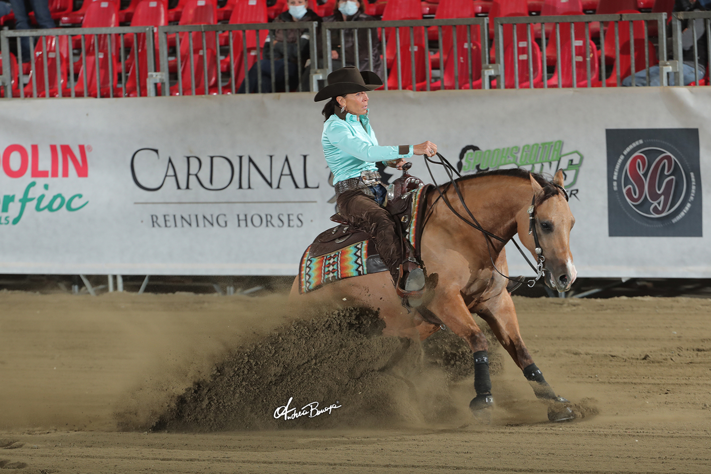 Topping the Level (L)4 Non Pro division with a 218.5 score was Gina Schumacher riding One Mr JJ (Colonels Shining Gun x QHR Jamaica Express), owned and nominated by XCS Ranch LLC. Fresh off her Non Pro Derby win at the 2021 Cactus Reining Classic —as well as qualifying for the 2021 The Run For A Million Open—with Gunnastepya between the reins, the young German rider slid her way to the highest spot with One Mr JJ, a 5-year-old American Quarter Horse Stallion bred by Brent Loseke who she had also shown at the WestWorld of Scottsdale event. Thrilled with having qualified her three horses for the finals, Schumacher was quick to thank NRHA Two Million Dollar Rider Bernard Fonck and NRHA Million Dollar Rider Ann Fonck for all their help in Cremona.