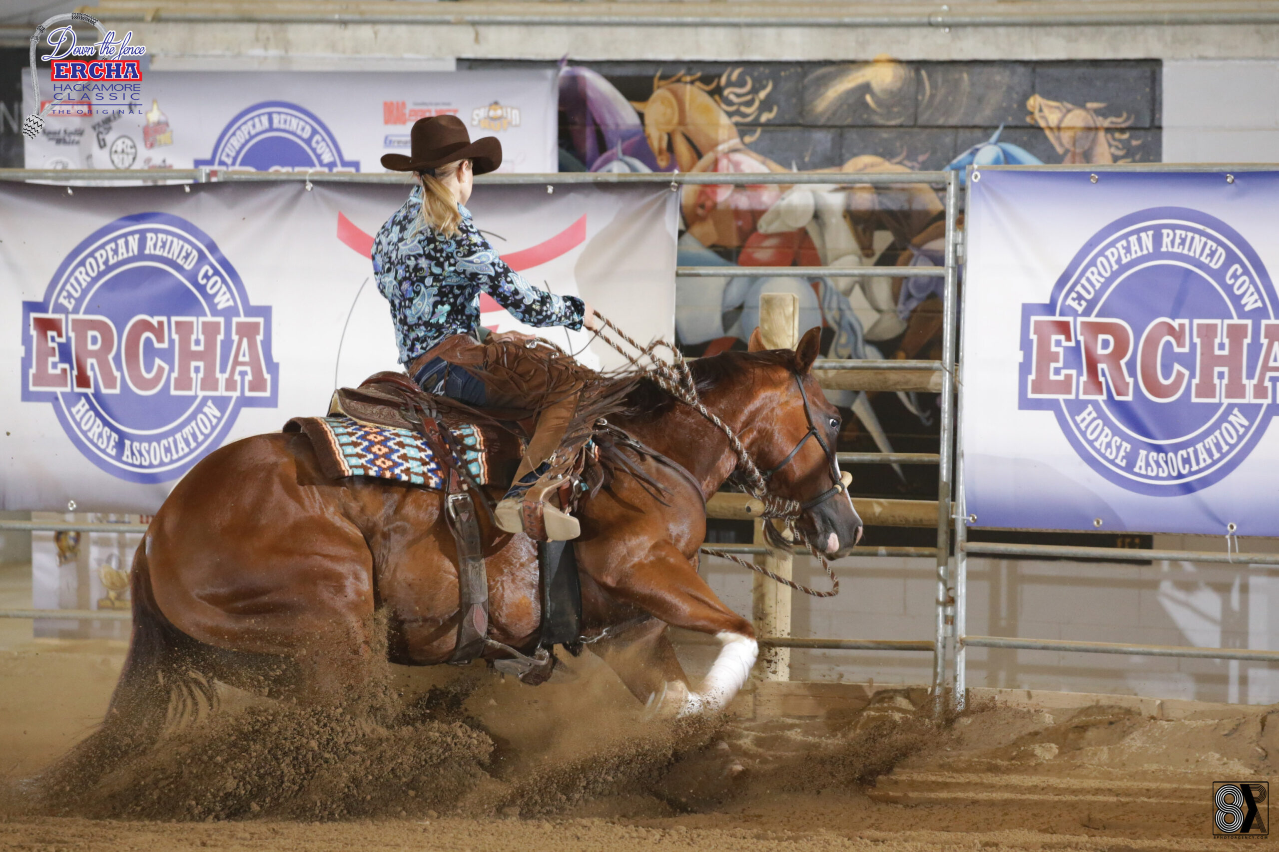 With a total 142.5 (rein work 68.5; fence work 74), ERCHA/NRCHA 1K Non Pro Limited Bridle champions were Giulia Fasani and Peptos Lil Bingo (Peptoboonsmal x Conchita Gay Bingo) owned by Markus Schopfer. In second place were Karl Simon and his own Bricks Smart Player (Jac O RimaAvril Smart Play). The duo scored a total of 140.5 (rein work 70.5; fence work 70).