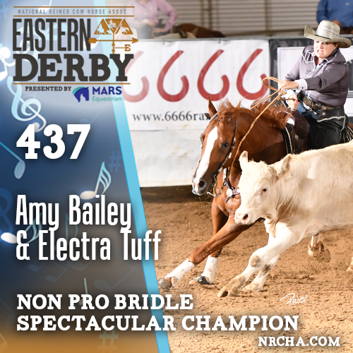 With a composite 437 (R:146/H:143/C:148), Bailey earned $2,758 for the win. She also took home a C.R. Morrison NRCHA Bronze finish trophy, an engraved cup and a Gist buckle courtesy of the NRCHA, and a UltraCruz Prize Pack from Santa Cruz Animal Health.