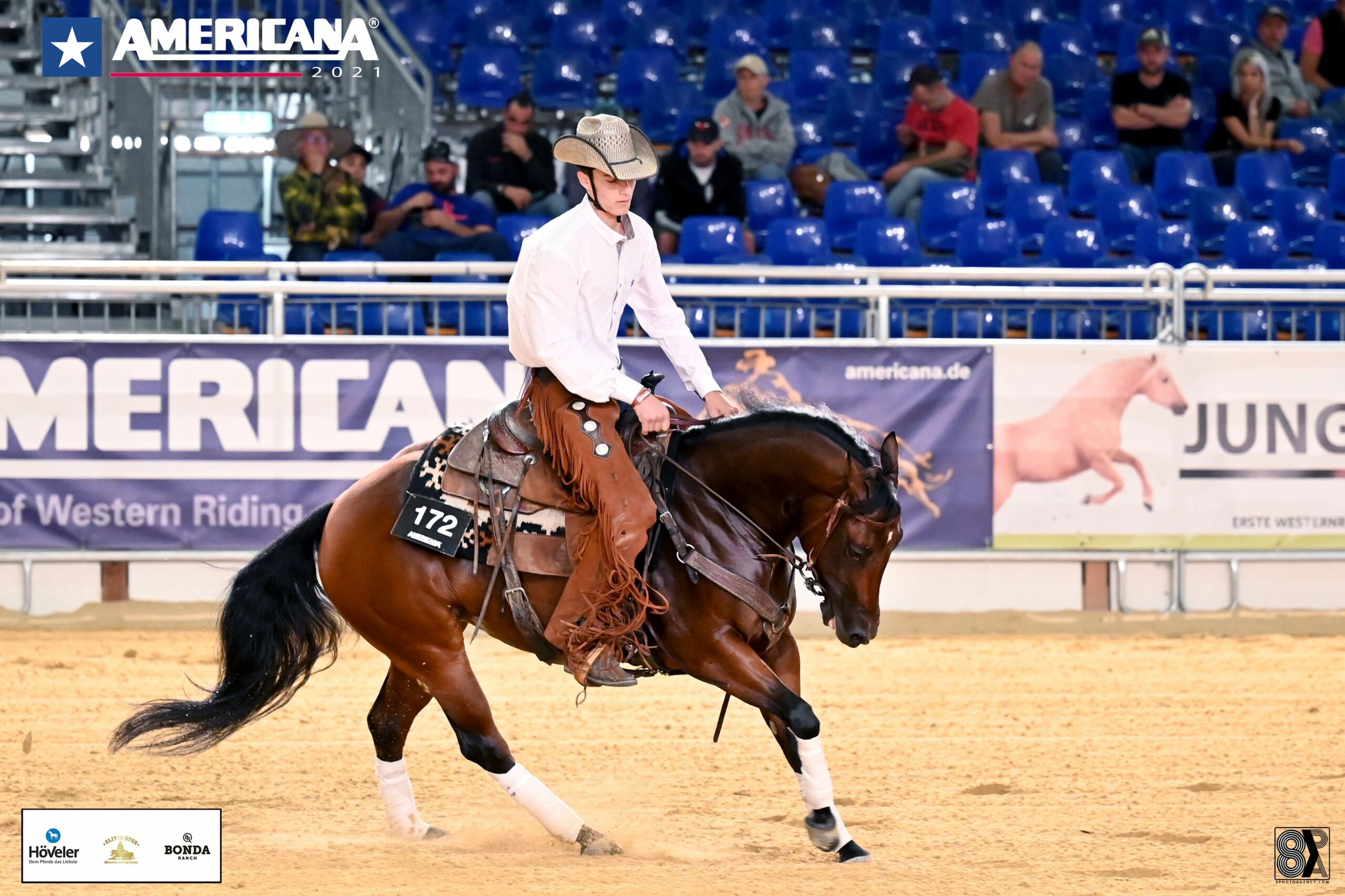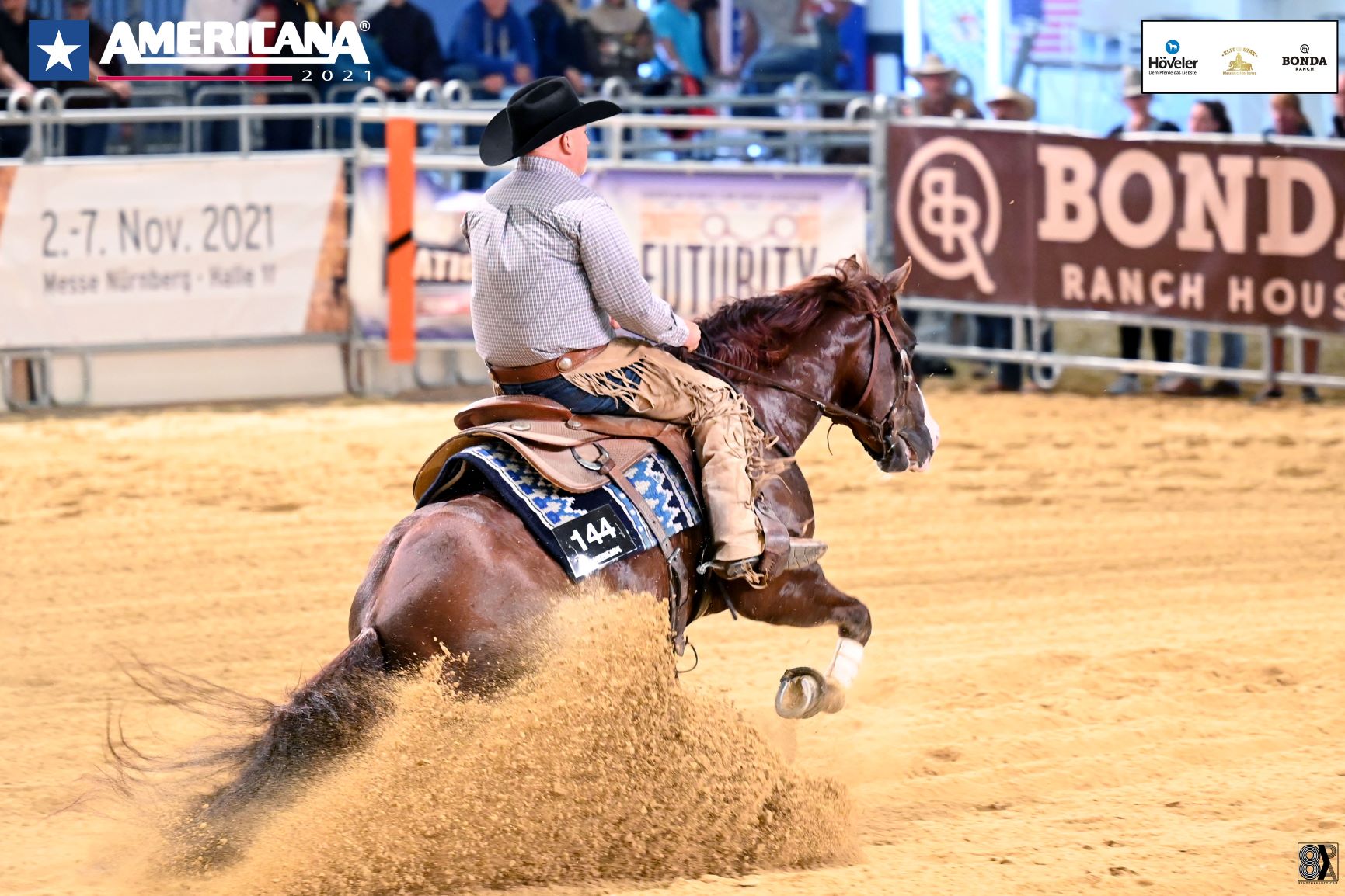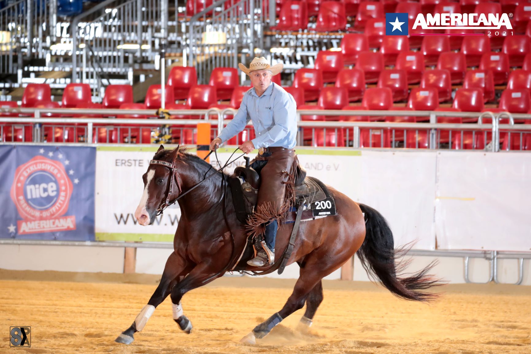 The 2021 edition of the AMERICANA, held in Augsburg, Germany, is host of the 2021 ERCHA/NRCHA Futurity and Derby. Following the rein work qualifier which counted an impressive 43 horse-rider-combinations in the Futurity and 20 in the Derby Open, it was a tie between Alfons Hoefkens and Giovanni Campanaro in the Futurity and a tie between the latter and Schopfer in the Derby.