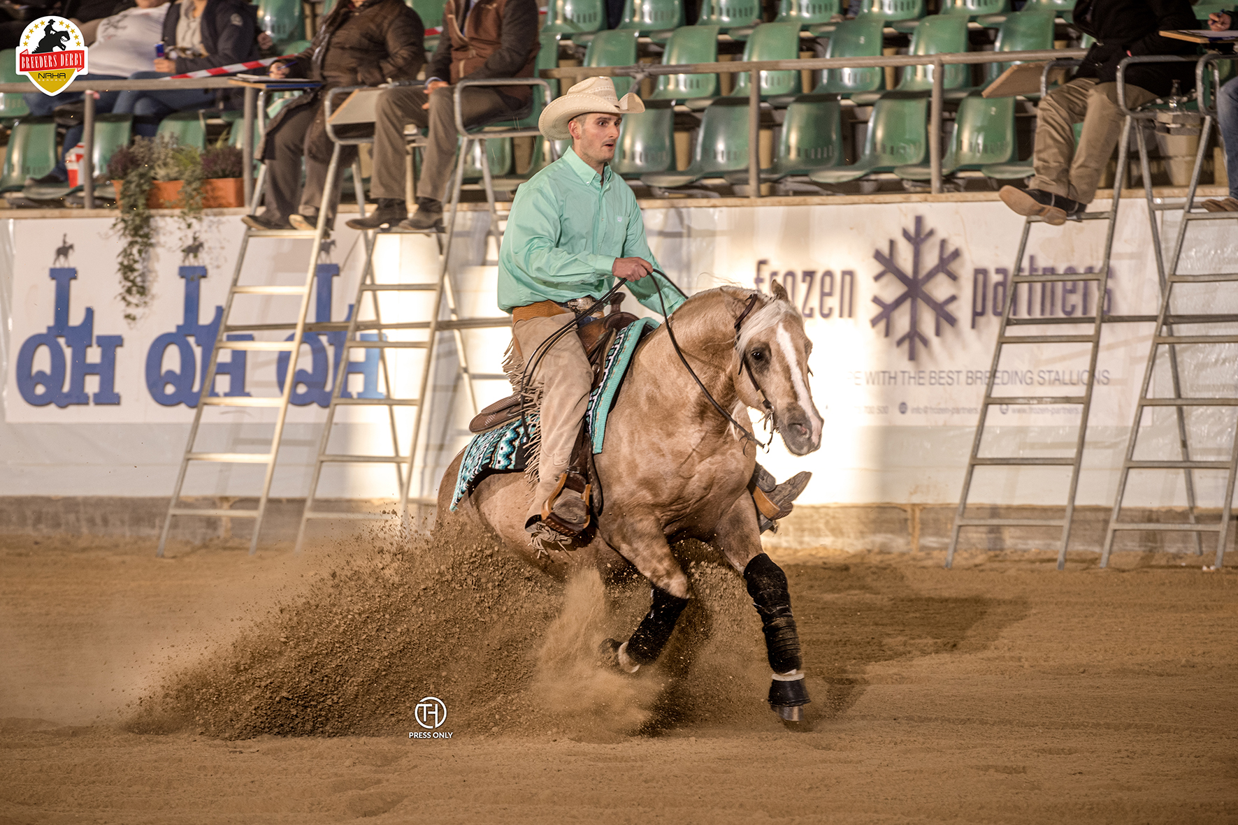 The duo was cheered on during the whole run as Gebert decided to omit the bit on his horse and show in a bosal, which added an extra degree of difficulty to the performance and at the end it paid off. “I showed her in a normal bit in the go round and it just didn’t feel right. For the Finals I switched to bosal that I sometimes use at home, and the mare felt much better,” explained Gebert who plans to take the mare to the NRHA European Derby in Lyon, France, in couple weeks.