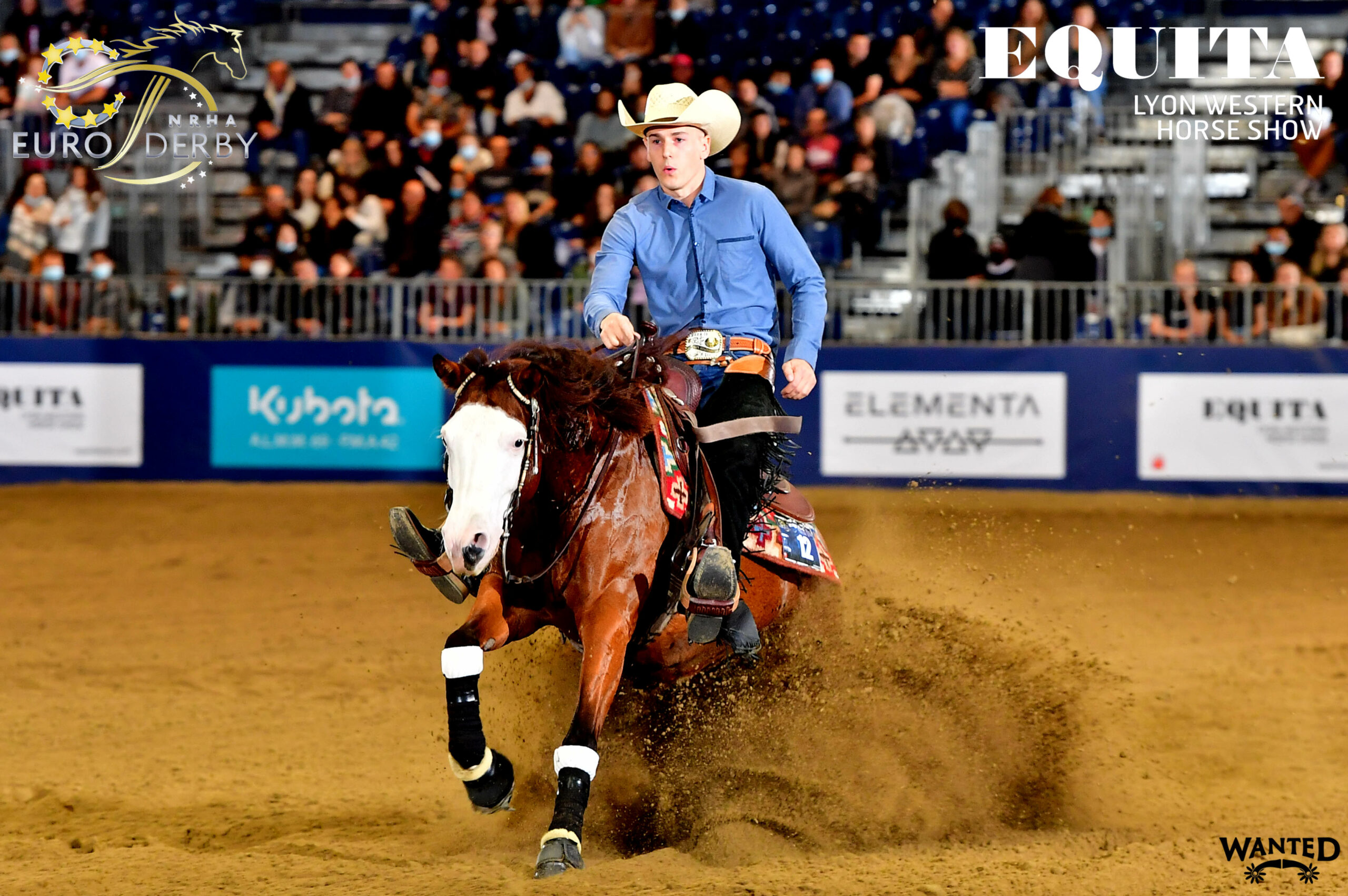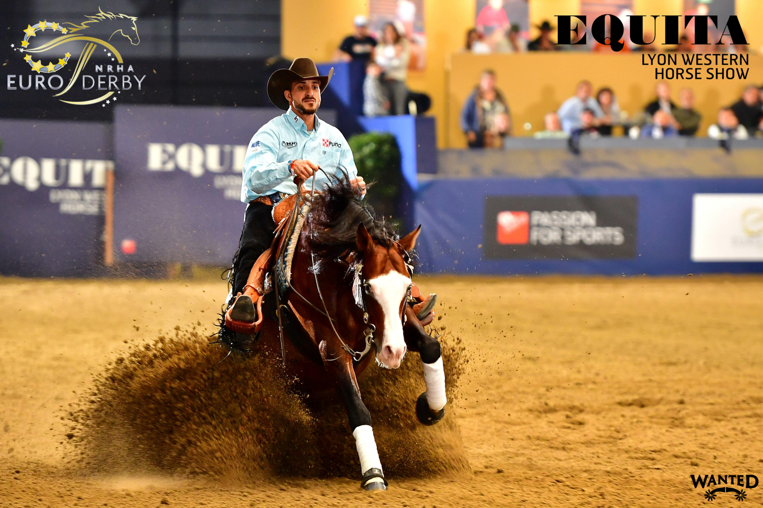 Lyon, October 30–Saturday at Equita Lyon, Lyon, France, provided thrills and excitement as the 114,000€-added*-added National Reining Horse Association (NRHA) Open Derby Finalists vied for the titles in the four divisions in front of a full house.