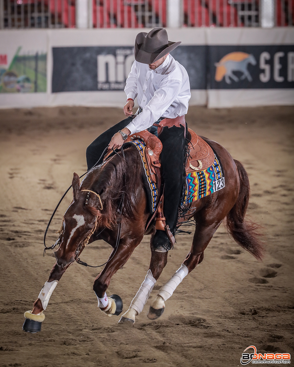 De Iulio purchased the mare when she was 6 months old. “She grew up at our home and I trained her from the first day we put the saddle on her,” said De Iulio. “I am very proud of her: She was very good at circling today even though it is not the maneuver that I thought she would have performed so well. She has some nice stops too. It is a pity that we were not able to spin as well as she usually can, but we will try to adjust that for the Finals.”