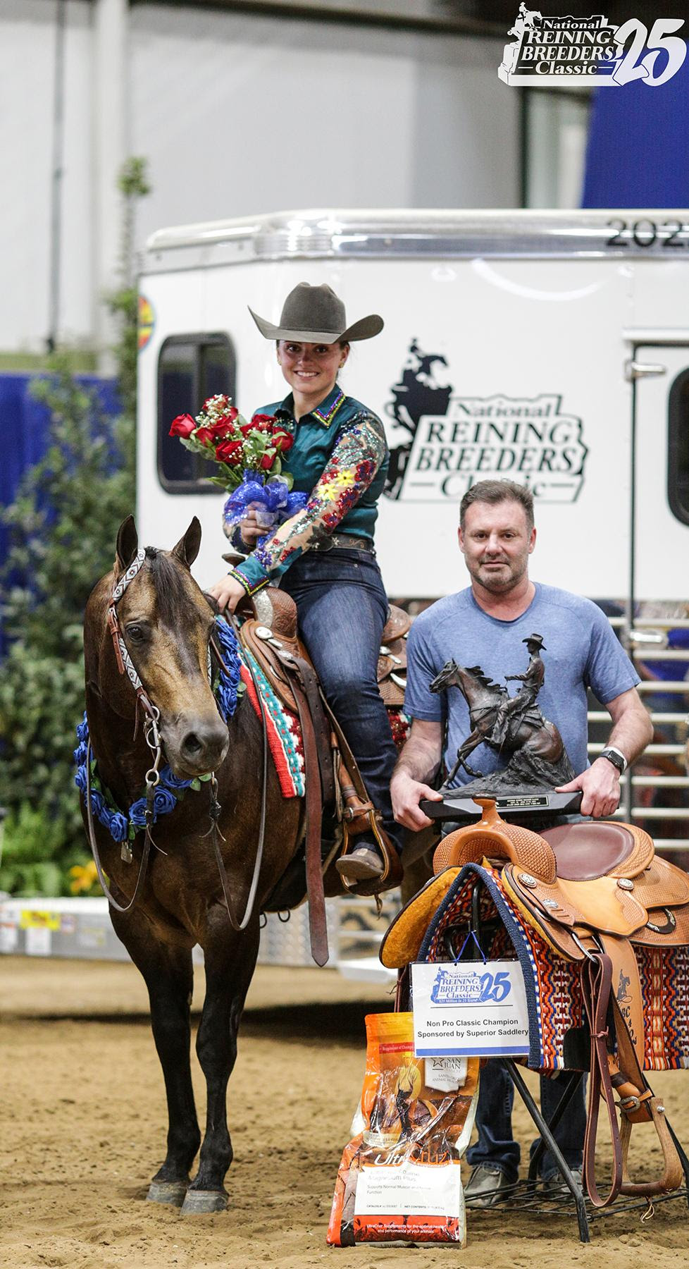It’s hard to believe that such and impressive performance could come from a new team, but the NRBC was the pair’s first time to compete together! “This is my first show with him. He was trained by Jason Vanlandingham, and Cade (McCutcheon) has been helping me with him since the start of this year,” she said of the six-year-old stallion. “This horse is just so fun, and there’s nothing like him. He’s a breeze to ride.”