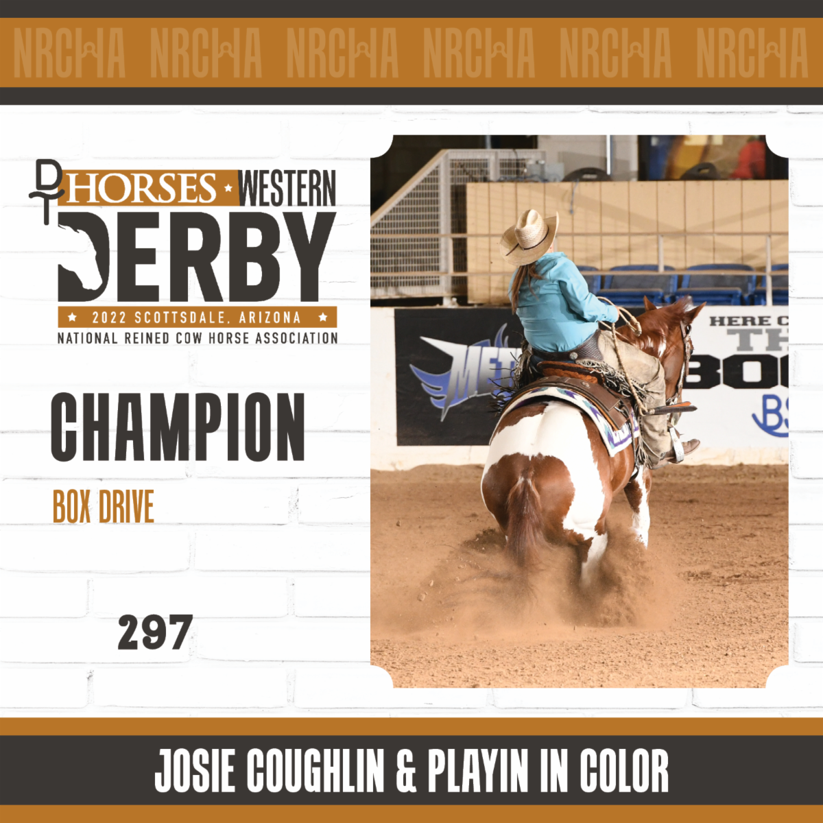 In the final class of the day, Josie Coughlin showed her mare, Playin In Color, to a 297 in the Box Drive class. The pair marked a 145 in the rein work and an impressive 152 on the cow. Coughlin secured a check for $1,155 and took home the title.