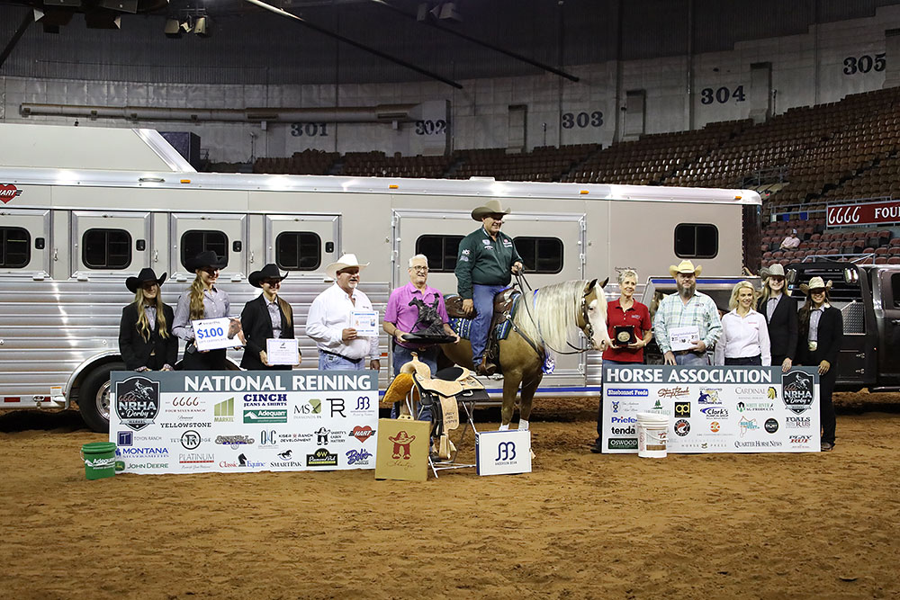 Five riders advanced from the second slate of Non Pro The Run For A Million Qualifier Sunday morning in the Jim Norick Coliseum at the 6666 NRHA Derby presented by Markel. Long rosettes in hand, the riders joined the ranks of non pros vying for the $50,000 TRFAM Non Pro purse, which will be held in August at the South Point Hotel & Casino in Las Vegas, Nevada.