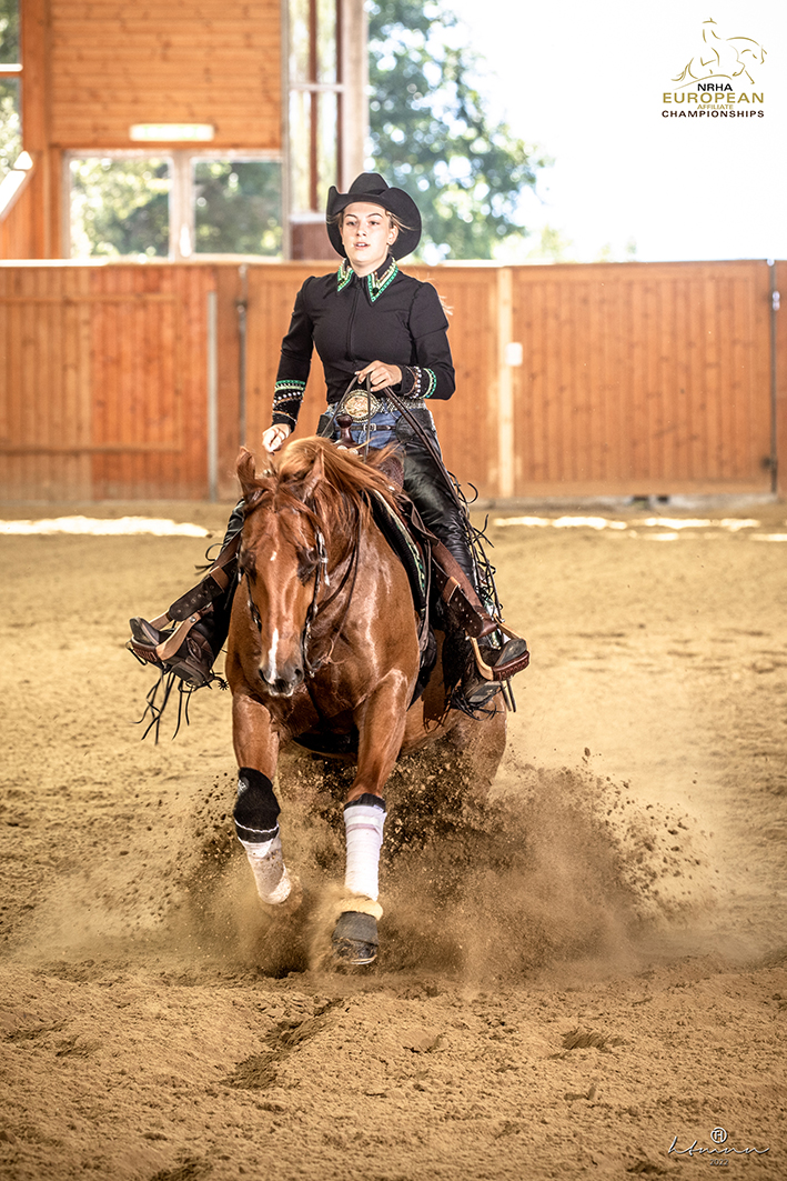Lilian Wohlgensinger of Switzerland & Spooks Martini (NRHA Four Million Dollar Sire Spooks Gotta Whiz x Arc Dirty Martini) owned by Nadine Wohlgensinger – score 141