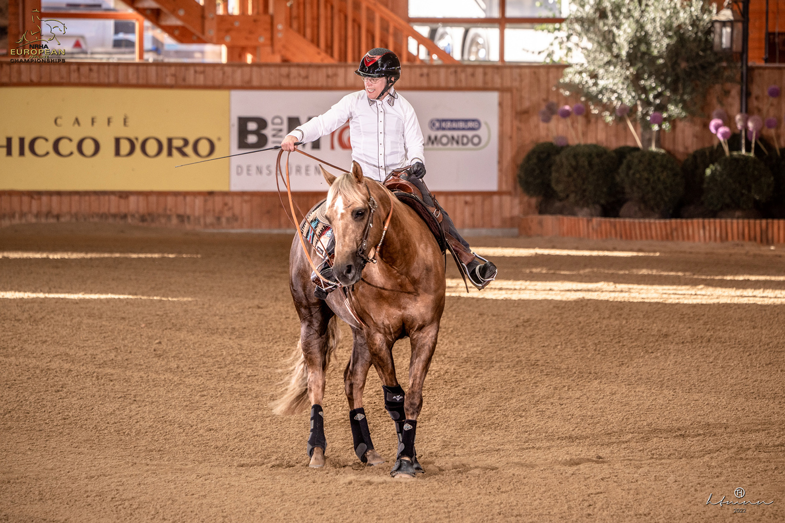 Givrins, July 17—Closing the successful $80,000-Added SVAG CS Classic National Reining Horse Association (NRHA) European Affiliate Championships held at NRHA Million Dollar Owner Corinna Schumacher’s state-of-the-art CS Ranch in Grivins, Switzerland, was the $200-Added Rookie EAC.