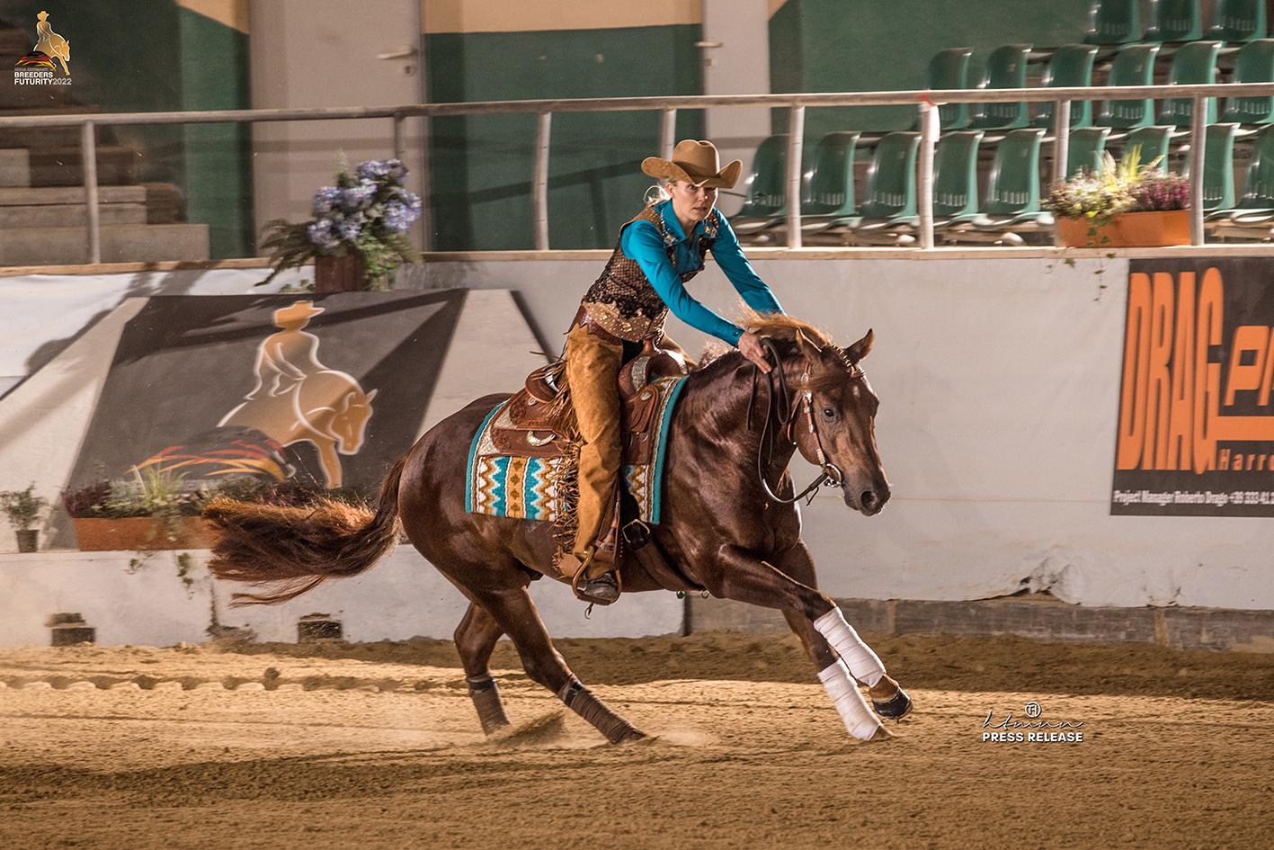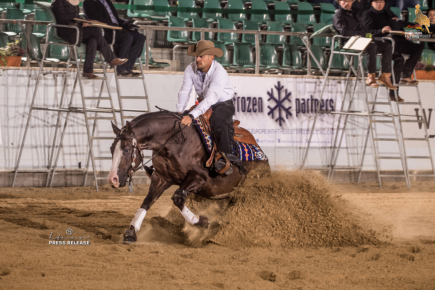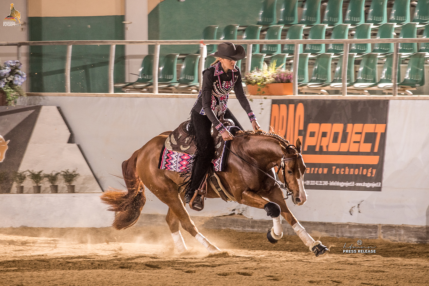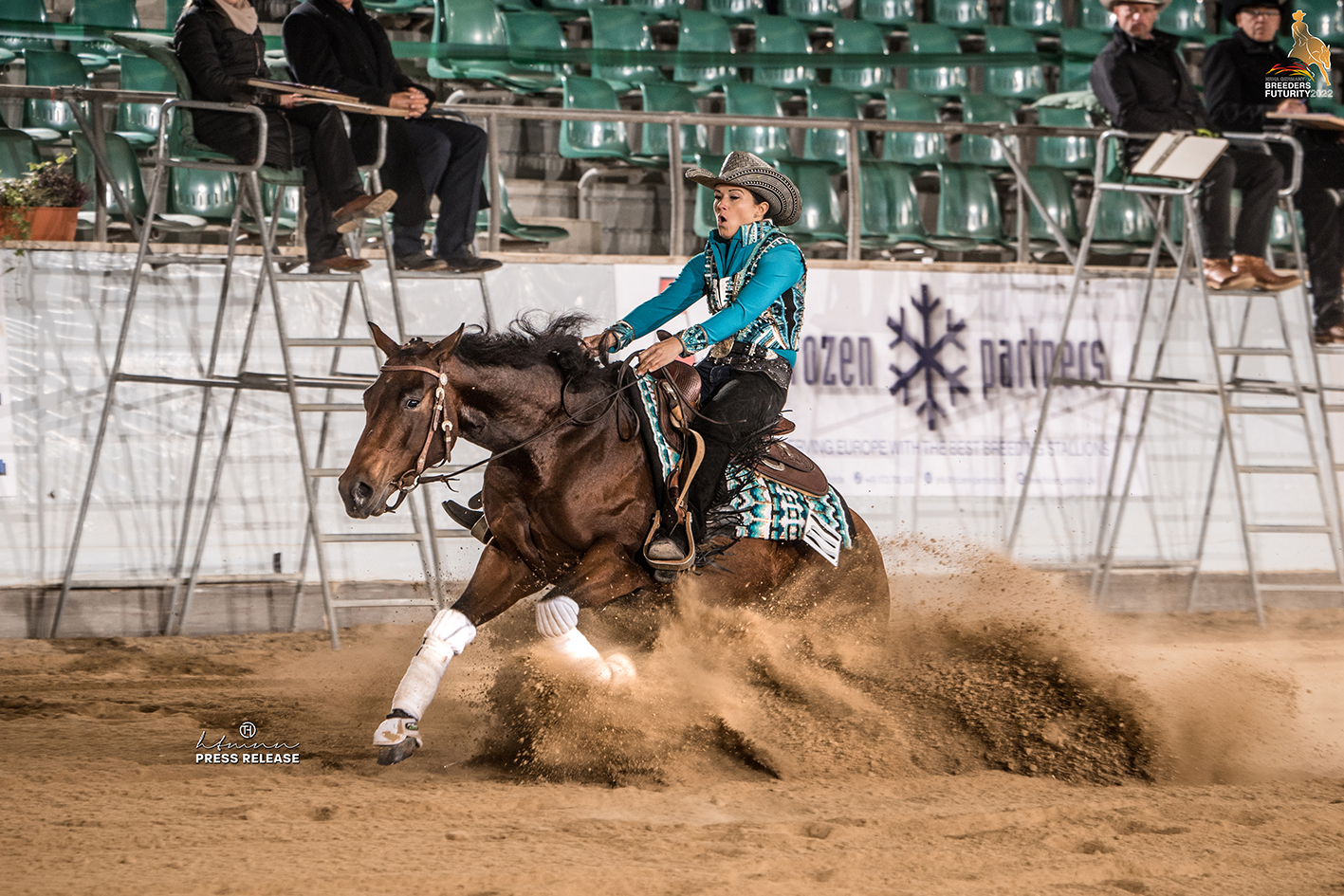“I am really happy about my run and my horse; he behaved so well. I am very grateful for all the people around me who helped me get to this point. I had a lot of fun today,” said Penha. “We bred him and trained him until few weeks ago, when we brought him to [NRHA Professional] Matyas Gobert who put all the finishing touches on him, so that was a big part of today’s results. I really love to circle this horse. He has a natural style and a great slow down. I tried to go a little faster than in the go round and it paid off,” concluded Penha, who plans to enter the Italian Futurity next.