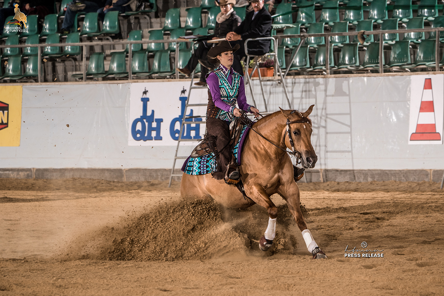 The show concludes on Saturday with the 2022 NRHA Germany 4-year-old Breeders Futurity Finals: Non Pro Finals Section 1 starting at 11:00 a.m. and Open Finals Section 1 starting at 12:30, followed by the Sections 2 of the Non Pro and Open Finals starting at 17:30 and 19:30 respectively.