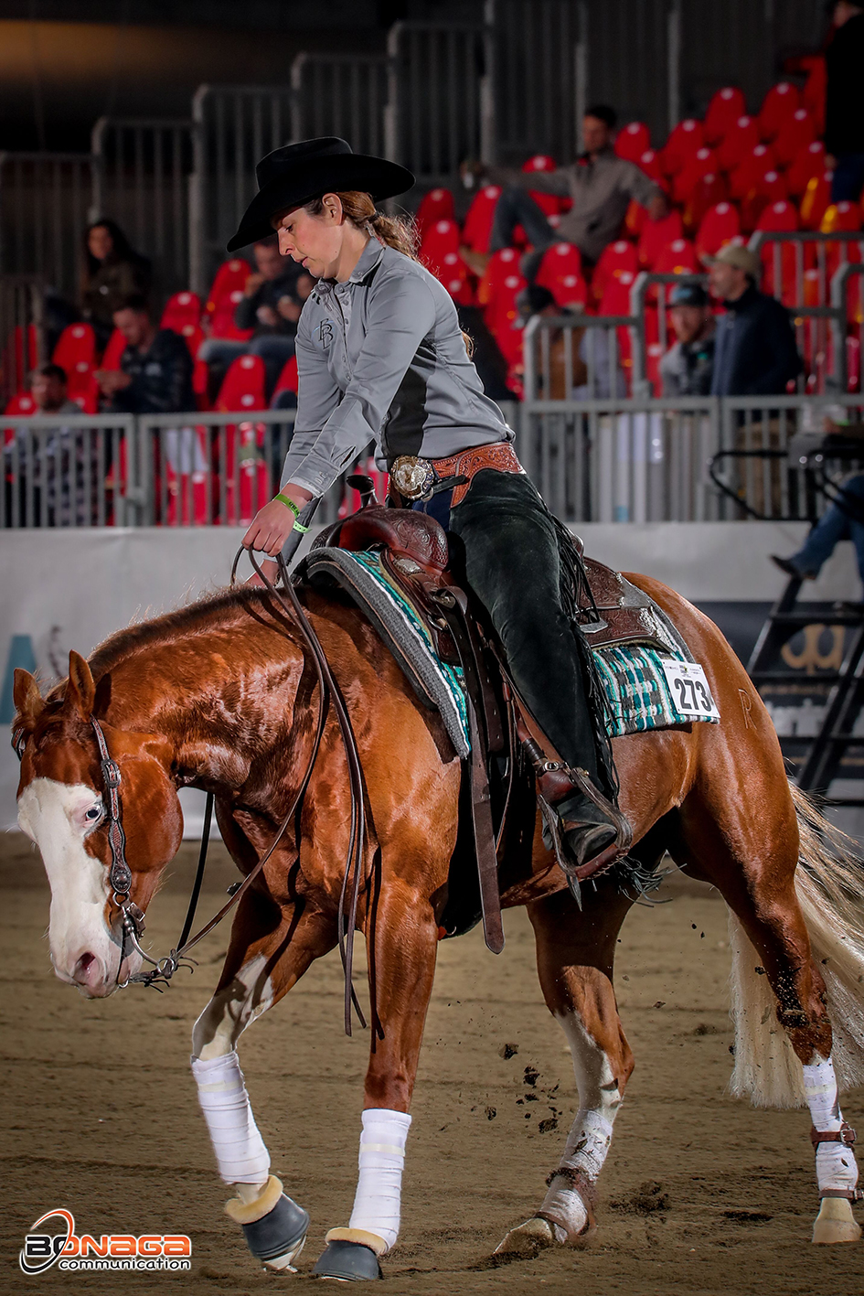 The IRHA L1 Open Derby top score, 219.5, was posted by Austria’s Barbara Bayer riding CGS Shining Gold (NRHA Million Dollar Sire Colonels Shining Gun x Golden Flashy Whiz), an 8-year-old mare owned by Alessandra Zotter-Gagony and bred by Katarzyna Roleska.