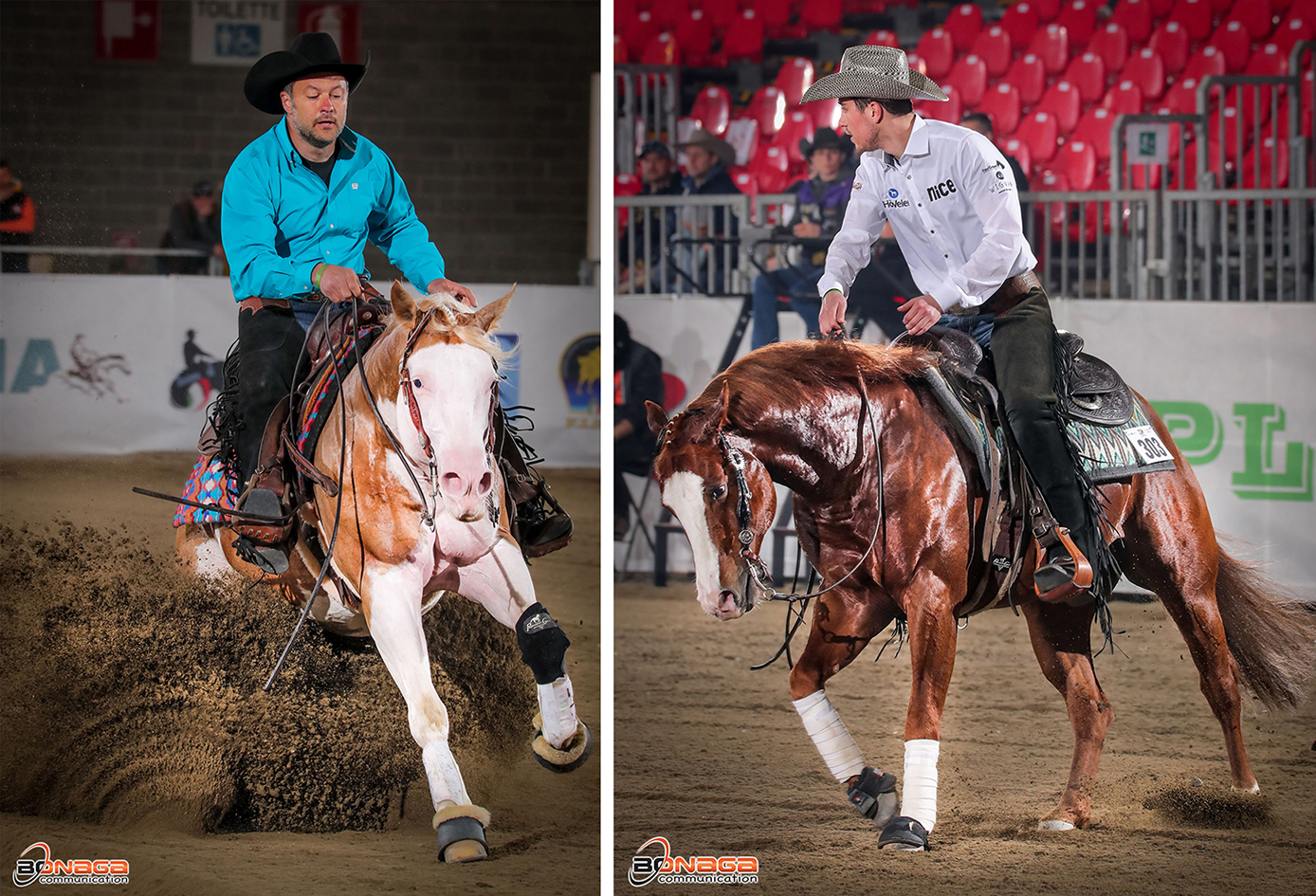 Tying to lead the L2 with a 220 score was Italian Angelo Benedusi riding PL Colonelsmoking CX (NRHA Thirteen Million Dollar Sire Gunner x Nu Dynamite Chex ), an 8-year-old stallion owned by Arianna Aspersi and bred by Luigi Parise, and Johannes Heil of Germany aboard SL Gunnabeyournite (NRHA Five Million Dollar Sire Gunners Special Nite x SL Helluvas Minnie), a 5-year-old stallion owned and bred by Sandra Linning-Foehl.