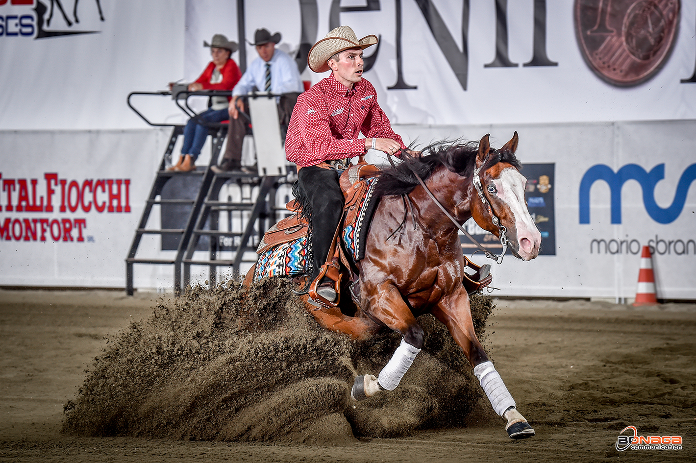 Simone Schiavo claimed the L1 top score of 215 aboard VD Snarling Miracle (BB One Miracled Gun x San River Clara Cay) for owner Andrea Pedrotti. The 4-year-old mare was nominated by Mario Corteletti. The duo is also tied to lead the $1,750 APHA Futurity L4 Open Chrome Cash Incentive go round along with Klaus Lechner riding Psychokiller (Tinseltownsmokingun x Hot Ice Surprise) owned and nominated by Daniela Fuith.