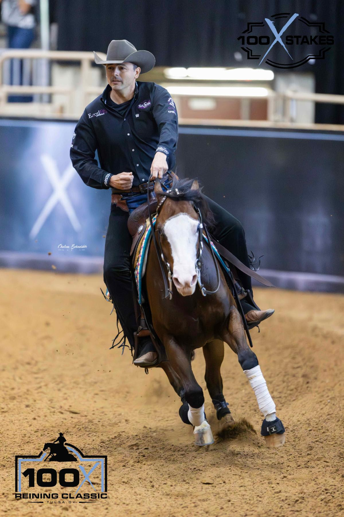 With his ‘good boy’ Gunna Chic Dream, Luca Fappani won the 100X Open Stakes Finals Level 2 at the 100X Reining Classic in Tulsa, Oklahoma. The pair also finished seventh in the Level 3 and twelfth in the Level 4.