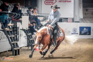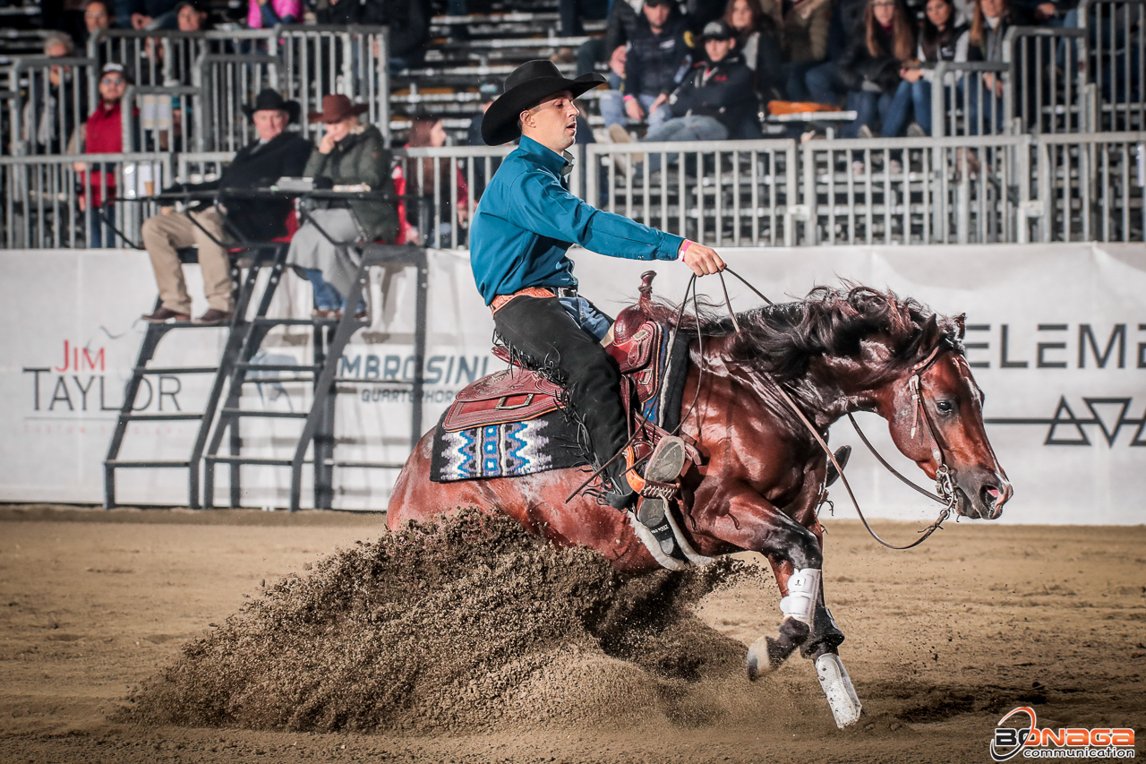 The stallion by NRHA Million Dollar Sire SG Frozen Enterprize out of Ladymaster (by Master Snapper), bred by Roberto Cuoghi is co-owned by NRHA Hall of Famers Eleuterio Arcese and Cuoghi. Two points behind was Italy’s Nico Sicuro riding Gunner Be Step (Sugar Little Step x Gunna Be Majestic), a stallion owned and bred by Quarter Dream.