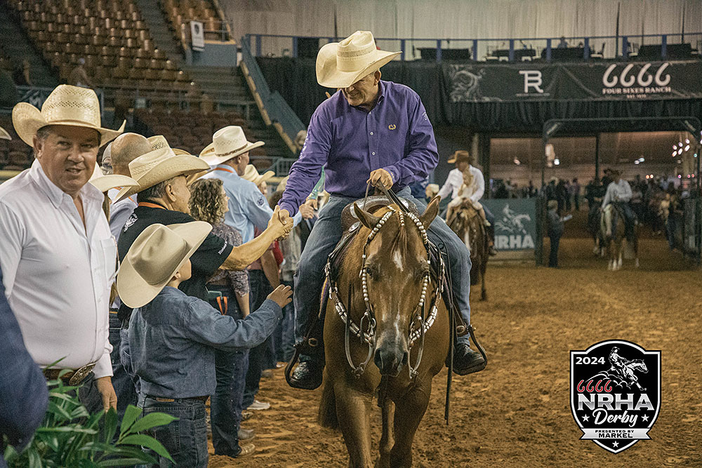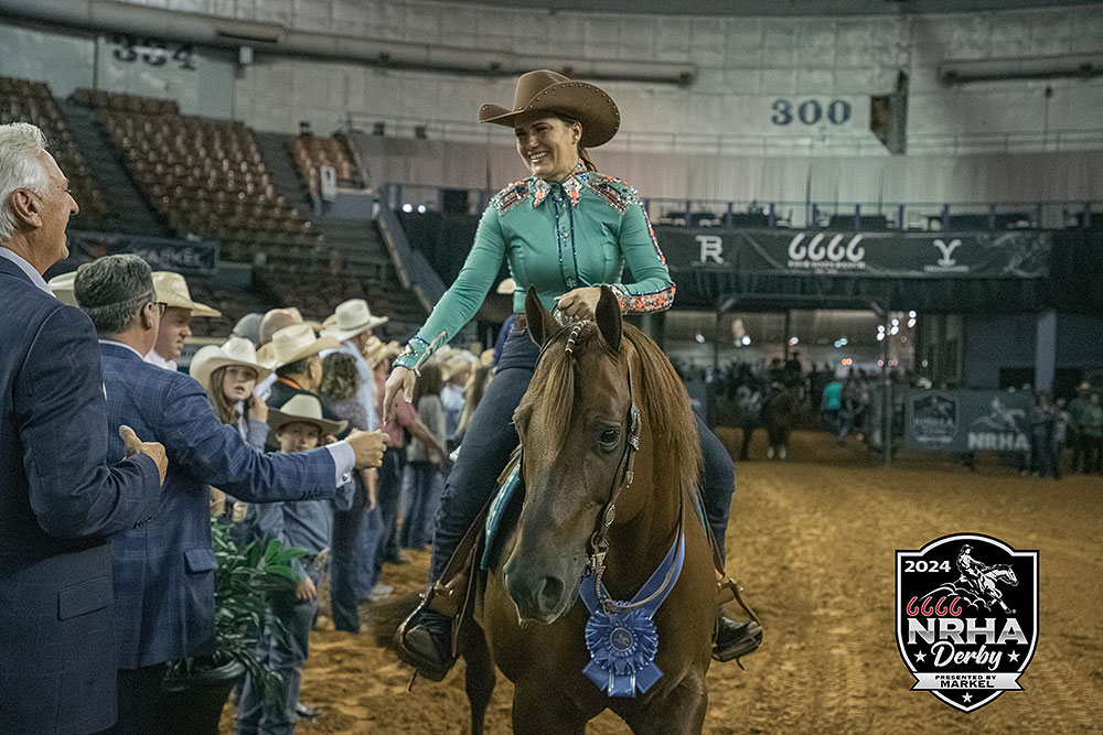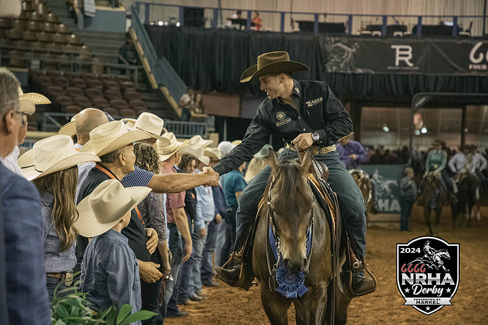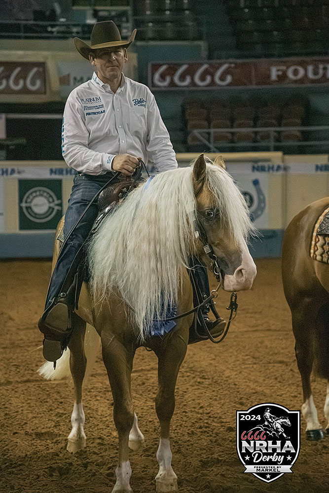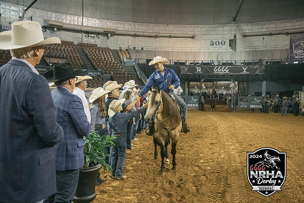 Tonight was a fitting finale to aged event classes at the 6666 National Reining Horse Association (NRHA) Derby presented by Markel. In its 45th edition, the show shattered records and paid out more money across the Open Derby levels than ever before. With such an impressive sum on the line, All Nite Partier and Cade McCutcheon secured the coveted $100,000 Level 4 Open Derby Champion’s check with a huge 231.5.