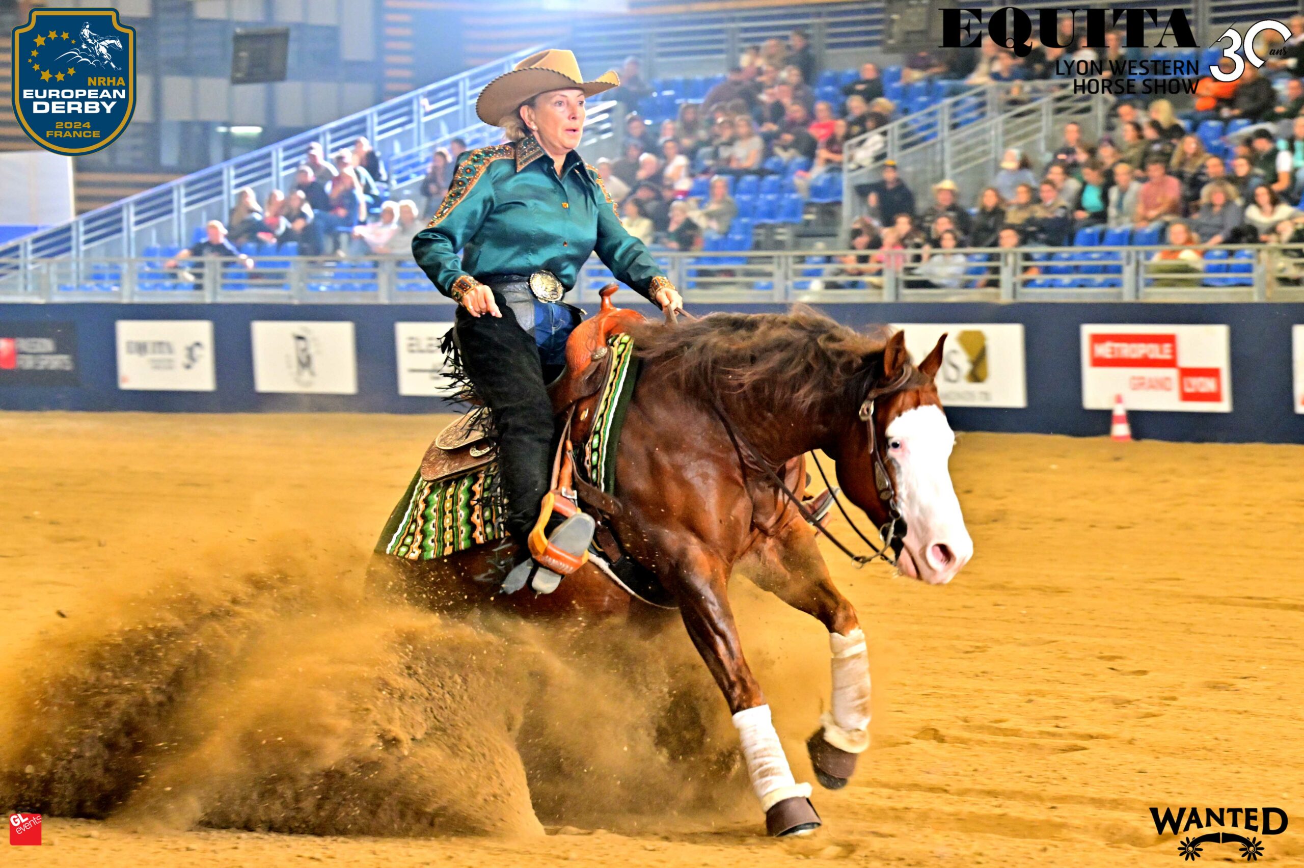 Earlier in the day, Austrian Nadja Hammer topped the $495-added LL Technologie NRHA Grand Prix Limited Open with a score of 216 aboard Mercedes Rooster (NRHA Million Dollar Sire Cromed Out Mercedes x Rooster Ata Party), owned by Rafal Dolata. The 12-year-old stallion, formerly owned by NRHA Professional Jonáš Bujnoch, returned to Lyon, marking a successful run since winning the NRHA European Derby L1 Open in 2018 with Bujnoch in the saddle.
